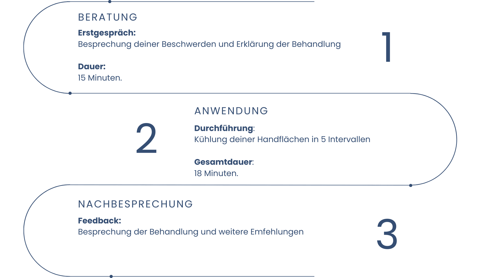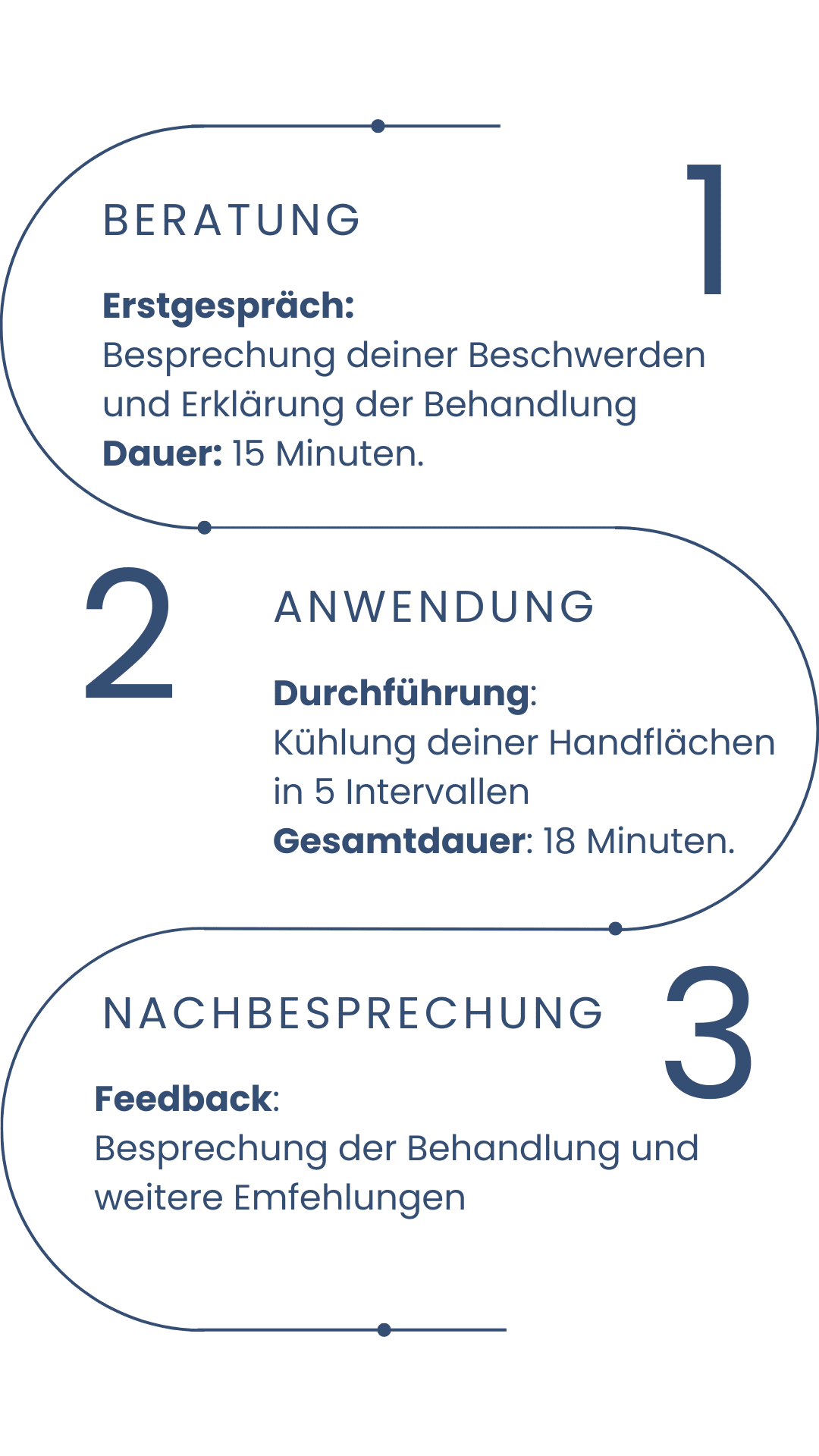 Das Gerät kühlt das Blut in den Händen und sorgt mithilfe von Unterdruck dafür, dass dieses über das Herz-Kreislaufsystem im ganzen Körper verteilt wird. Dadurch wird die Körperkerntemperatur gesenkt, was den Körper dazu anregt, seine Selbstheilungsprozesse zu starten.